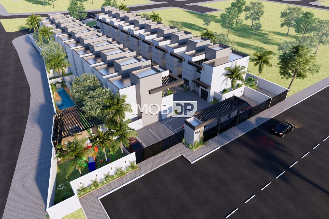 Sobrados de 81m² com um design moderno e espaçoso, incluindo varanda e vaga de garagem coberta para seu conforto.